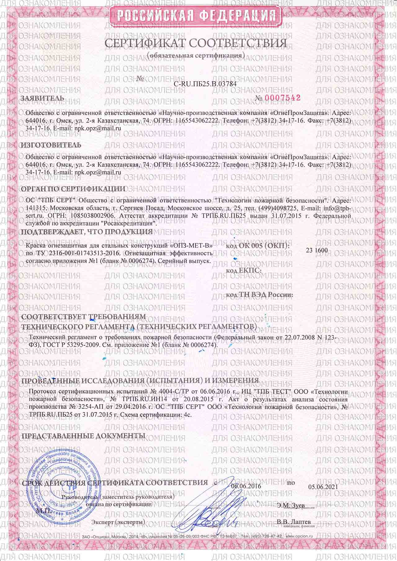 Краска огнезащитная для стальных конструкций «ОПЗ-МЕТ-В» на водной основе (Красгард)